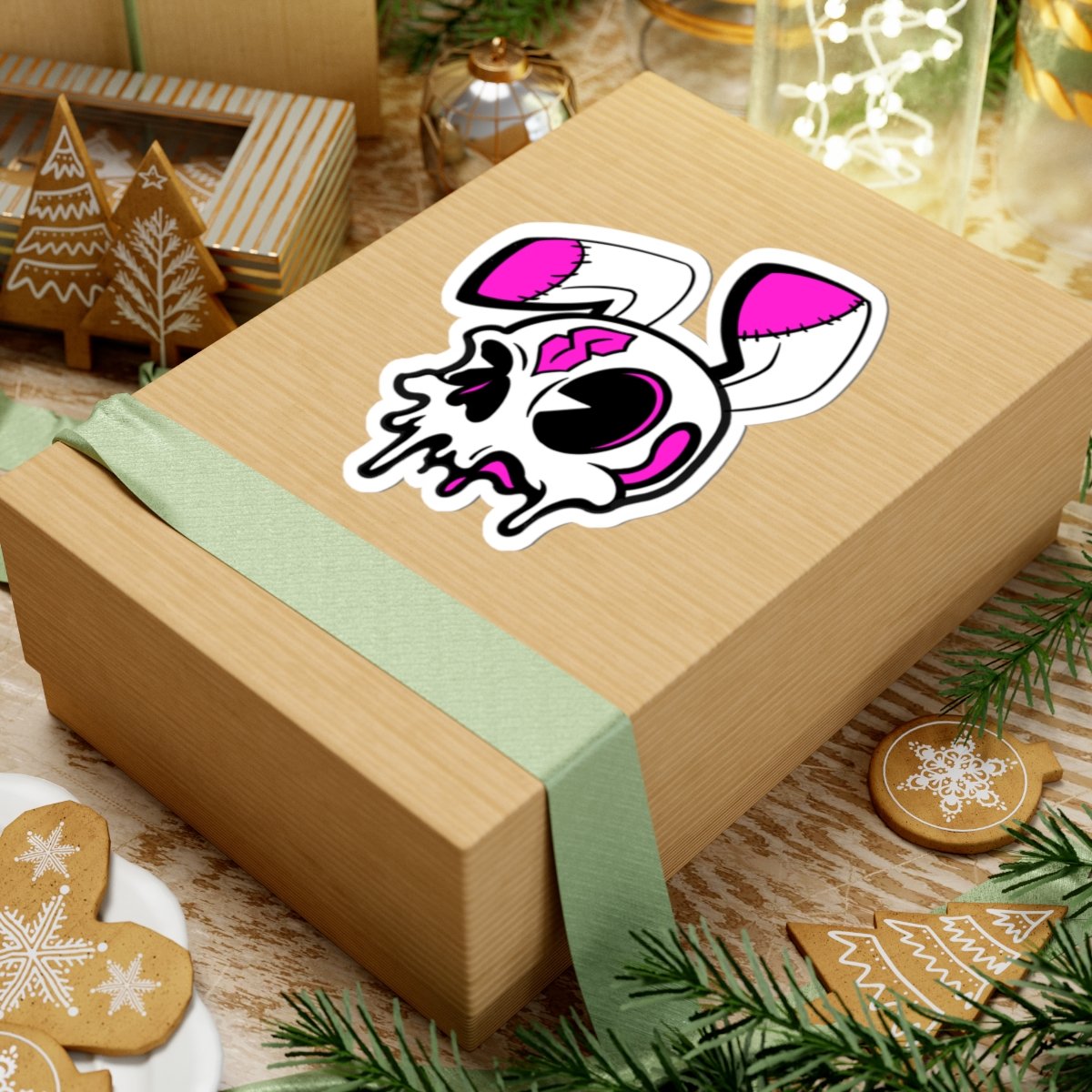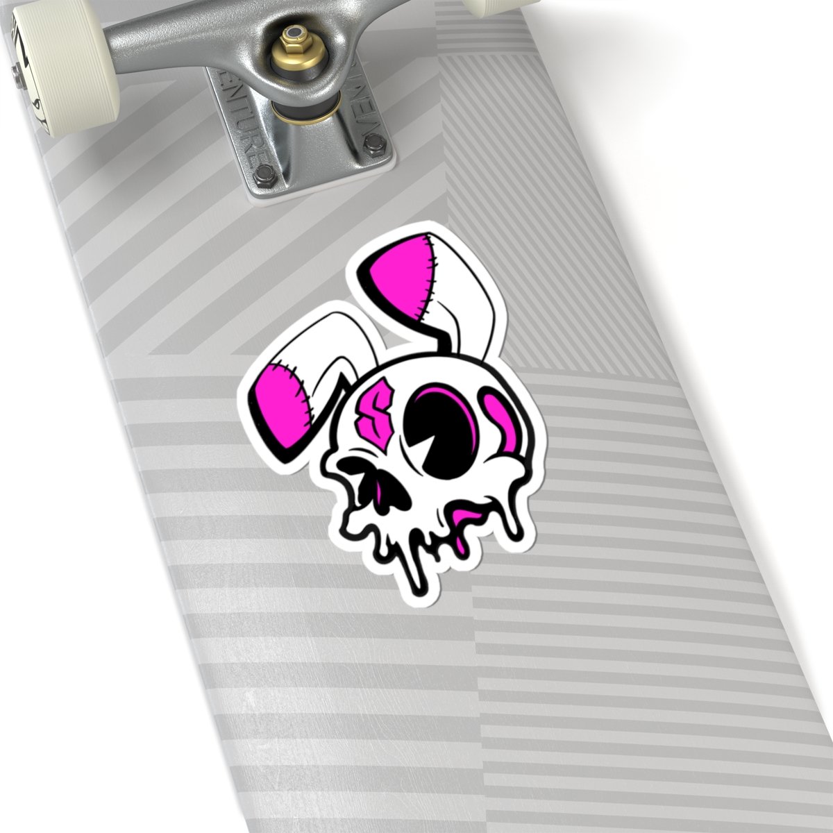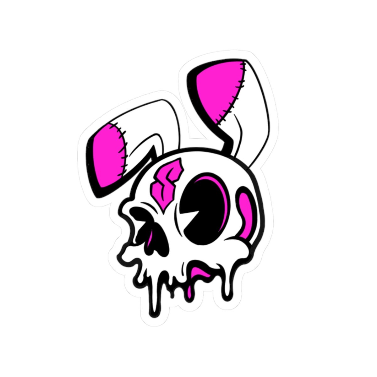 Give your gear a darker edge with the Roadkill Sam Kiss-Cut Vinyl Sticker. This design features a worn-down, skull-inspired character with stitched details and a rough, cartoon style—perfect for anyone who likes their aesthetic a little twisted.