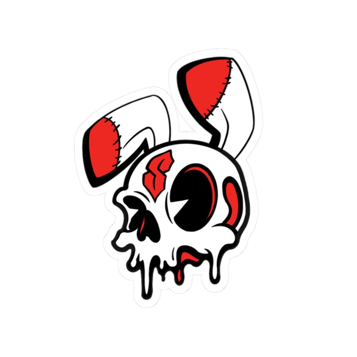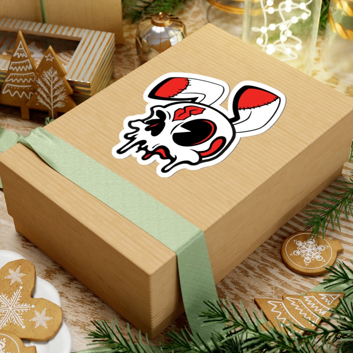 Give your gear a darker edge with the Roadkill Sam Kiss-Cut Vinyl Sticker. This design features a worn-down, skull-inspired character with stitched details and a rough, cartoon style—perfect for anyone who likes their aesthetic a little twisted.