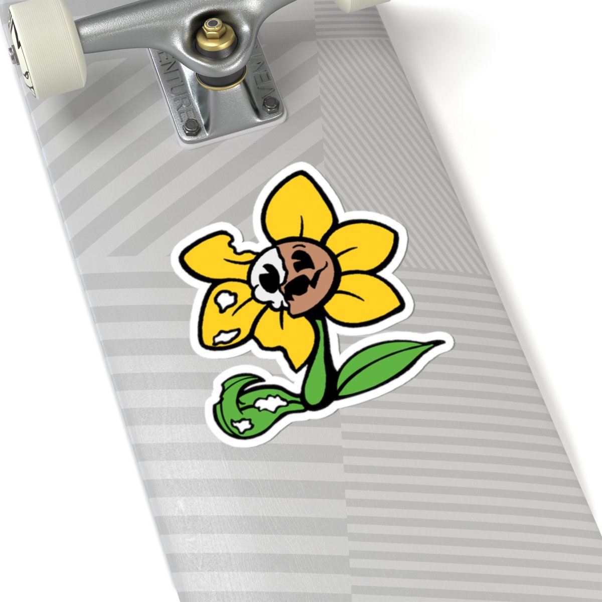 Add a little attitude to your everyday items with the Roadkill Sunny Kiss-Cut Vinyl Sticker. This design puts a gritty, offbeat twist on a classic flower character—perfect for standing out and showing off your unique style.